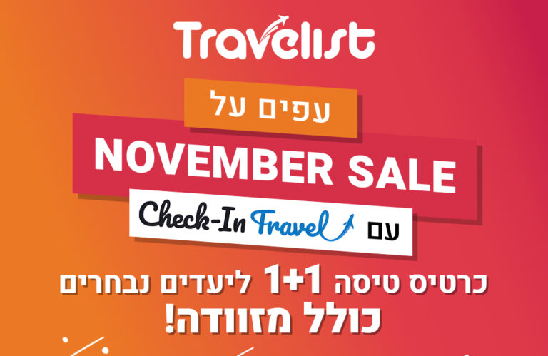 טרווליסט השתגעה!! 1+1 על כרטיס טיסה ללרנקה! טסים בזוג? שלמו רק על כרטיס אחד – והשני עלינו! הטבה מטורפת לזמן מוגבל כולל מזוודה עד 23 ק״ג לכל נוסע!! שימו לב:⭐ בעת התשלום הקלידו קוד קופון: LCASALE⭐ ההטבה תתעדכן אוטומטית בסכום התשלום הסופי להזמנה לחצו כאן
